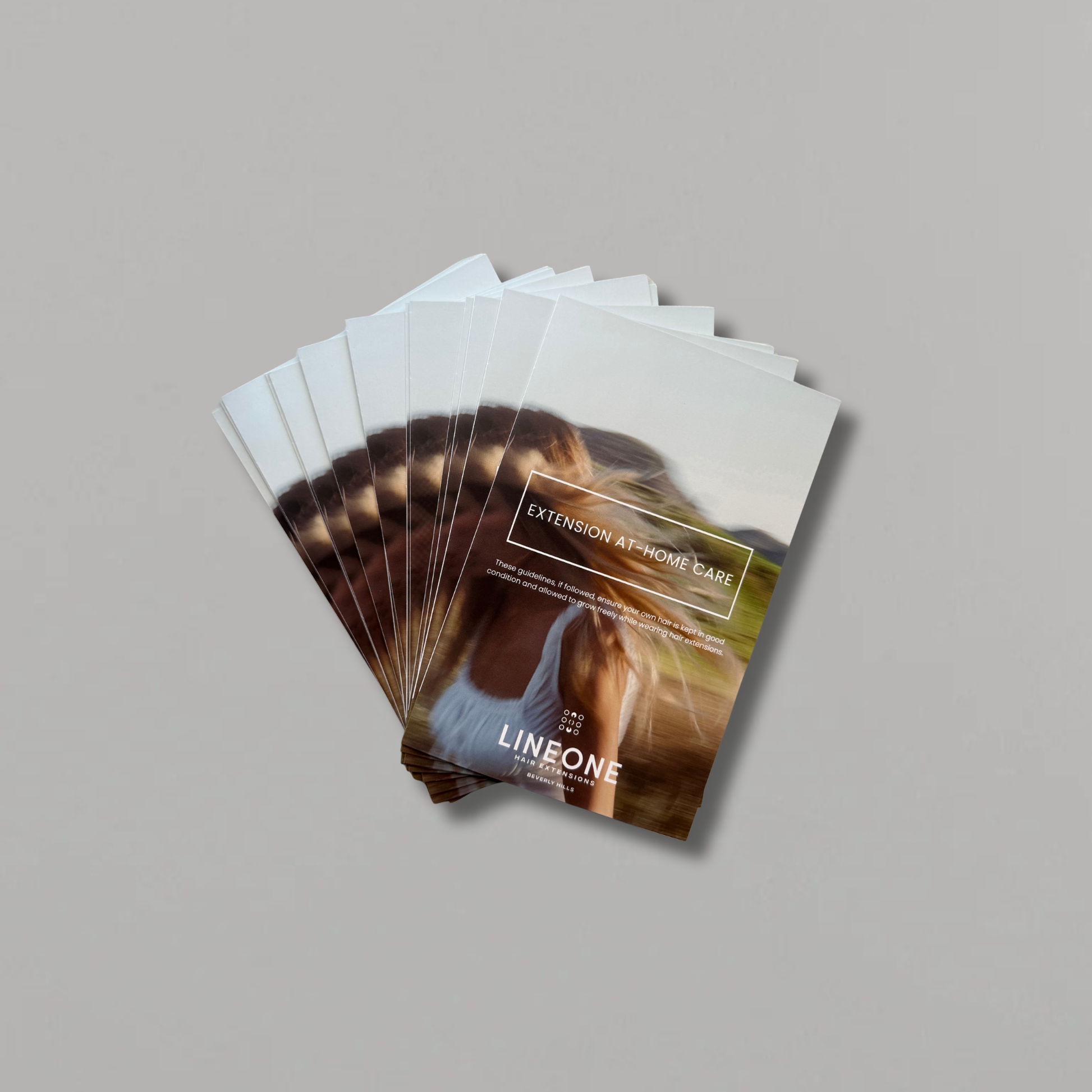 Elevate your client experience with giving them an Aftercare Brochure, designed exclusively for professional stylists. Each beautifully branded box includes 25 premium printed aftercare brochures, crafted to guide your clients through every step of maintaining their LINEONE Hair Extensions.