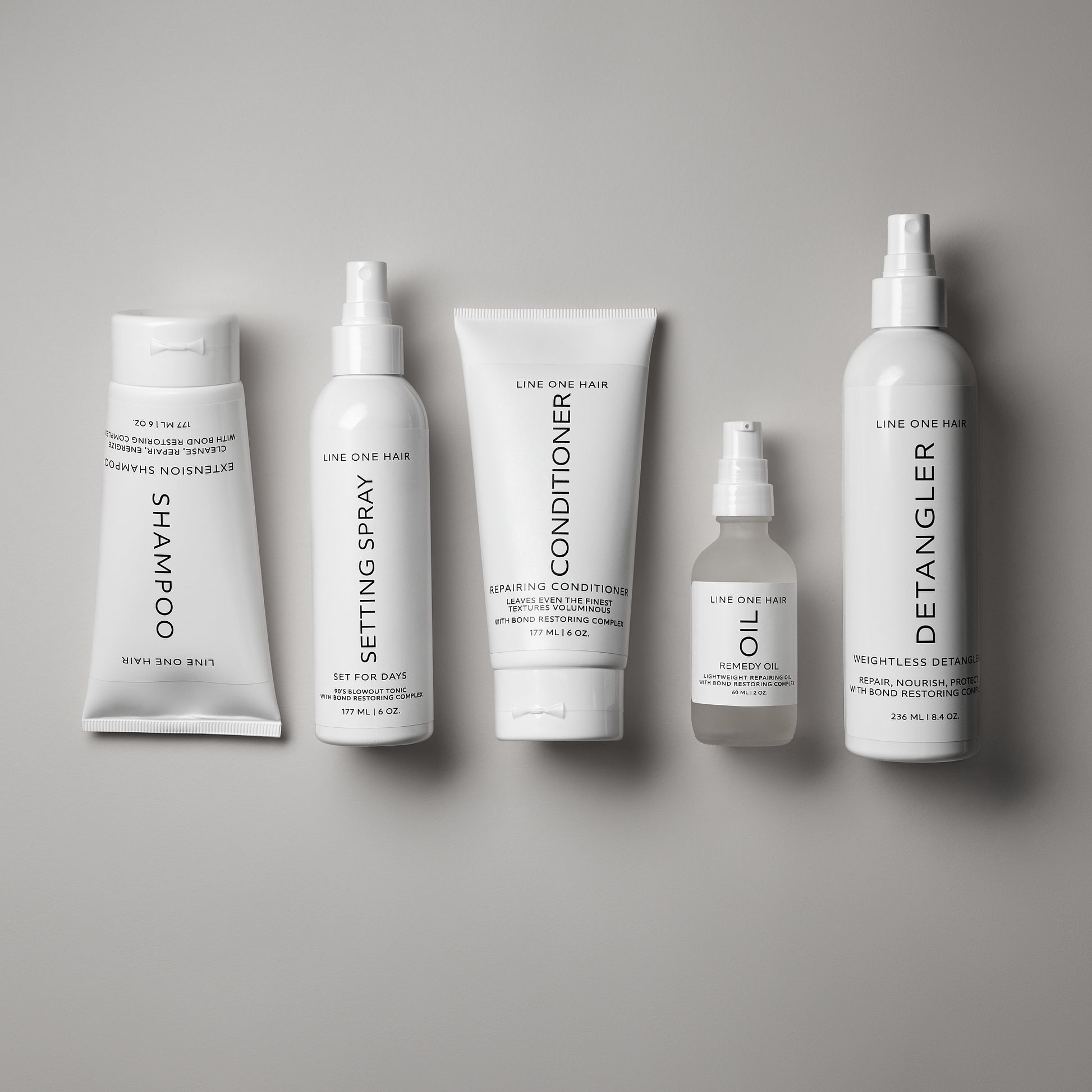 Includes all five of our signature products- Extension Shampoo ($30), Repairing Conditioner ($33), Weightless Detangler ($33), Setting Spray ($30) and Repairing Oil ($35).