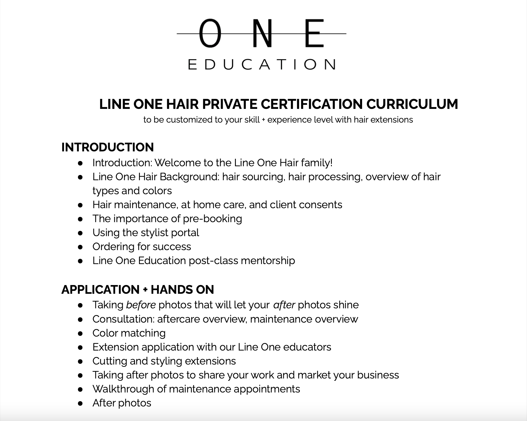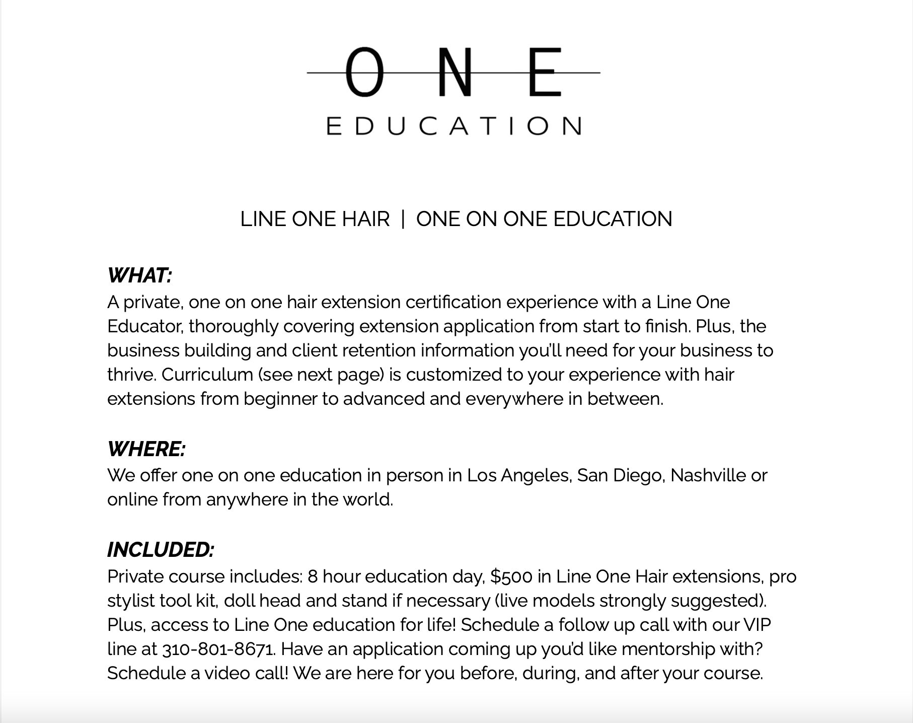 The private course includes $500 in LINEONE Hair extensions, a premium toolkit, plus dollhead and stand if needed.